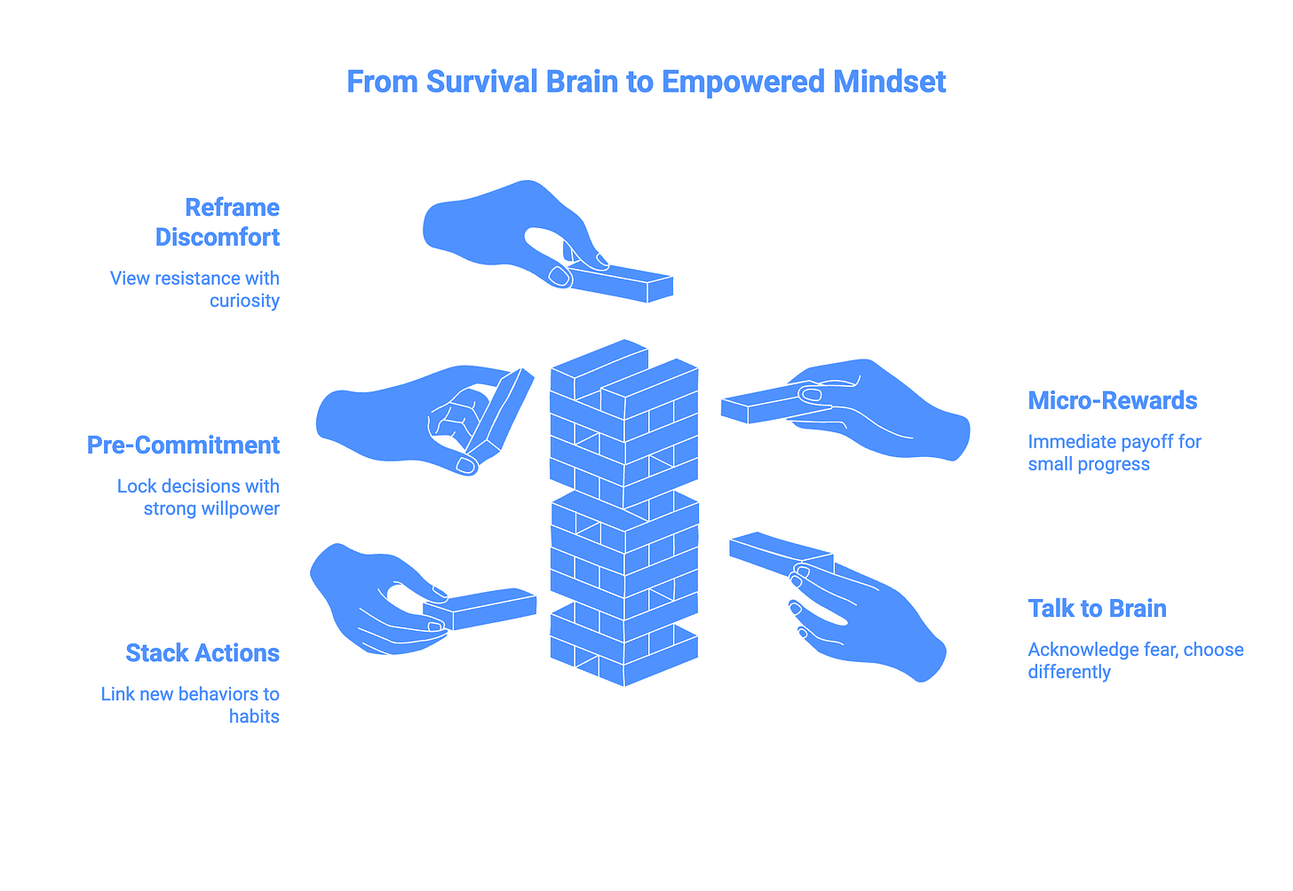 The reward must be immediate and pleasurable. This isn’t bribery. It’s training your survival brain that progress feels good too. Over time, the work itself becomes associated with reward, not threat.